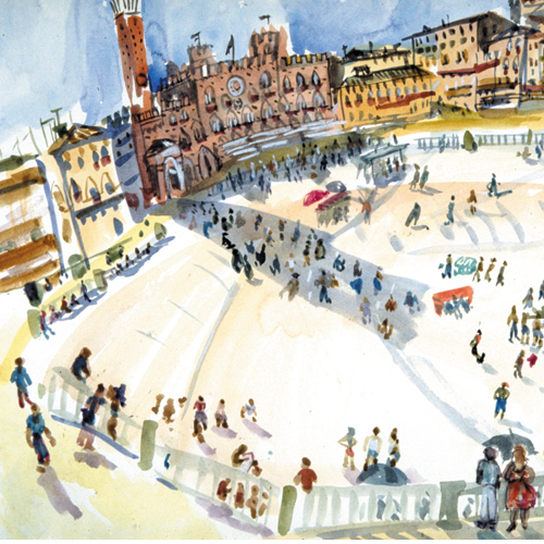 plein-air Umbria landscape with sunflowers.Umbria hill landscape in October.Medieval arch and passageway in Todi, Umbria.Preparing for Il Palio, Siena.Water delivery in Havana, Cuba.Baroque architecture study, Havana, Cuba.