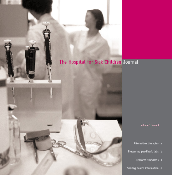 The Hospital for Sick Children “Kids’ Health” magazine masthead and covers.